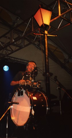 Phil playing his bass guitar during an unplugged version of