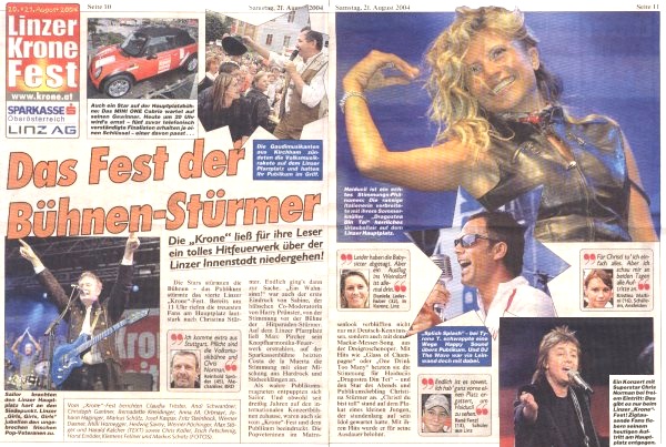An extract from an article about SAILOR's performance in Linz (Austria) on 20 August 2004 from the "Krone Zeitung" from 22 August 2004: