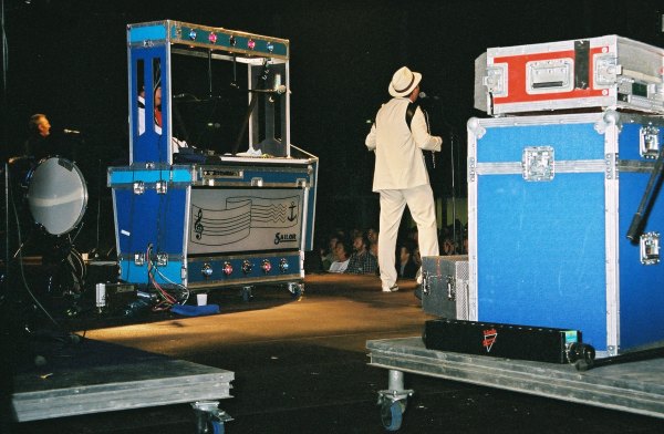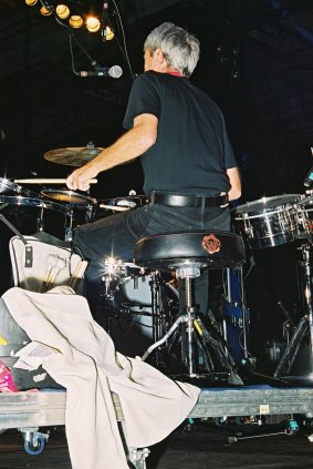 drummer, Grant Serpell, perched behind a 1920s style drum kit. It