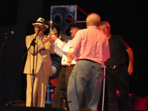 band with an award to acknowledge their association with the