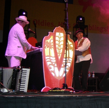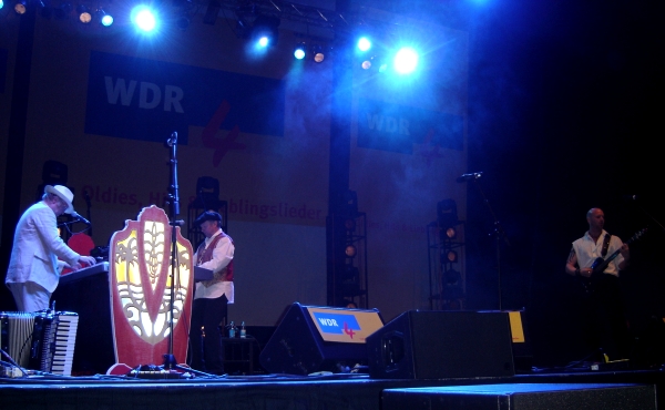 Karsten, Ursula, Katrin and Christel in front of the stage, just
