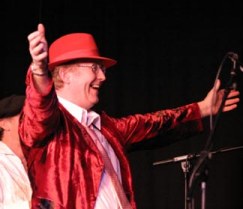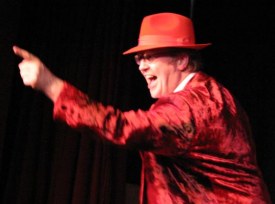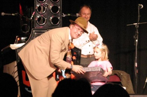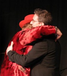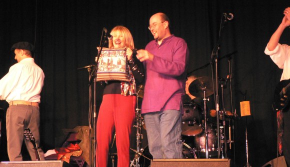 Dee Dee Wilde presenting James with a commemorative cushion on