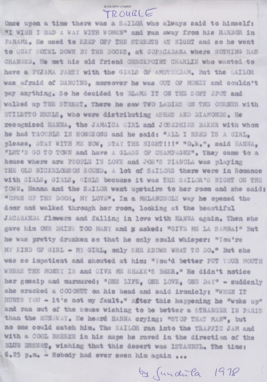 Gundula's SAILOR special "Trouble" - written in 1978: