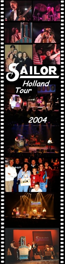 Special SAILOR Greetings to all the Dutch fans and everyone we've met whilst on tour here. We're having a fabulous time in a great country where all are so friendly and helpful... except perhaps a few of those who have given directions on the way to theatres! Well actually they're well-meaning, but when they say "Go right" which we've found (to our cost on the odd occasion- but now we know!) they actually mean "straight on". For instance, not having ever once been to Arnhem (A Bridge Too Far?) we found that by driving straight through it twice into the countryside beyond - we'd finally visited the town no less than 3 times in the same day! (3rd time lucky). The tour kicked off in Egmond aan Zee north of Amsterdam on the coast (20 November) and afterwards many of our faithful fans arrived to turn it into the usual 'SAILOR- party" - Katrin and Karsten of course - Christel and a number of others had driven from Germany, Linda from England and others from all over the place. Peter and Grant brought their cars over so we could be self-contained (we're actually quite good at looking after ourselves!) which means we can drive back to the same hotel in Leusden every night - Bliss! Earlier