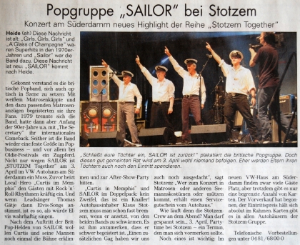 SAILOR will play in the line up with Oliver Marsh, Henry