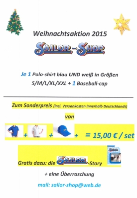 Durch die Schließung des SAILOR Shops von Werner Blessing im letzten Jahr könnt ihr nun die verbliebenen Poloshirts und Kappen für einen rollen Preis in diesem Weihnachts-Paket kaufen: