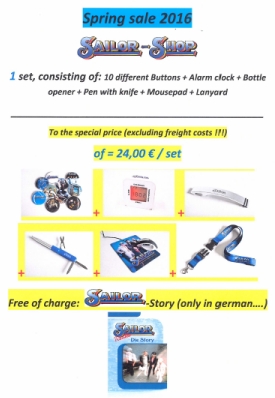 Due to the recent closure of the SAILOR Shop from Werner Blessing you can now get the a special Spring offer from him in this package. Details about it can be found here. E-mail Werner at sailor-shop@web.de to order! Best wishes