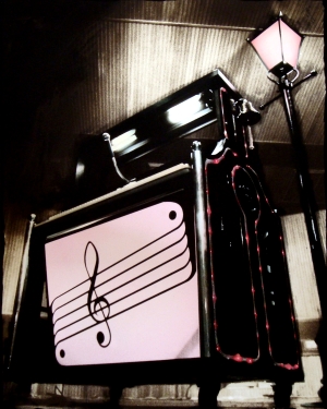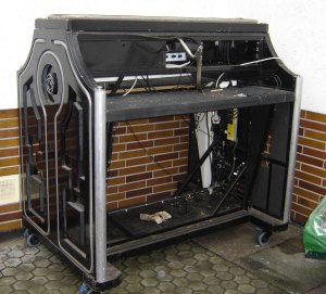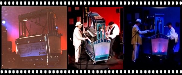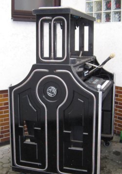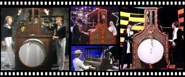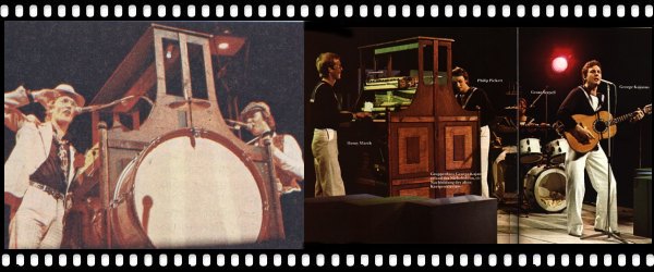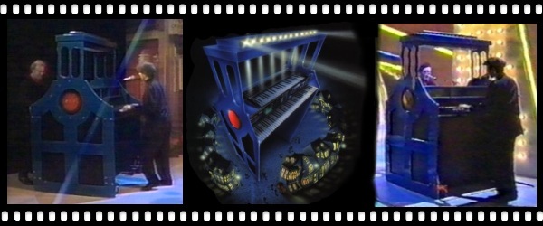 und eine Glocke. Georg über das schwarze Nickelodeon: "... Das nächste war das Schwarze - die Steinway-Version des Nickelodeons - das eine große Summe an Geld gekostet hat. Ich denke, es war sehr schön, und natürlich konnte man es zusammen klappen, doch es wog trotzdem eine Tonne, und es war ein Monster - ein echtes Stück Ausrüstung, wie man sagen würde. Es war ein wesentlicher Teil des Equipments, aber hey - es war auch einwesentlicher Teil von SAILOR! Das ist etwas, das ich komplett selbst designt habe und bauen ließ, ich habe es nicht selbst gebaut, aber ich habe es bauen lassen. Dafür habe ich alle Details daran designt, was sehr viel Zeit in Anspruch genommen hat. Ich fand es sehr hübsch, ich war mit diesem Nickelodeon sehr zufrieden." |