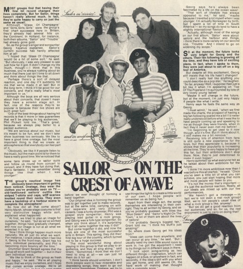 Most groups find that having their first hit record changes their lives completely. But for SAILOR, things haven't really altered much. In fact, they're quite happy to carry on just the - same as usual.