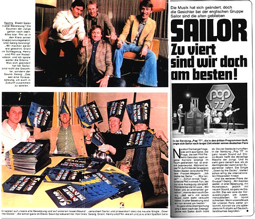 In der Sendung "Pop '77", die in den dritten Programmen läuft, zeigte sich SAILOR nach langer Zeit wieder seinen deutschen Fans.