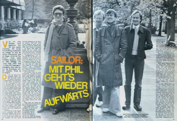 Vor ein paar Wochen noch kämpften SAILOR ums nackte Überleben. Mit letzter Verzweiflung produzierte die Gruppe zu dritt ihr Album "Checkpoint" und die Single "Down By The Docks". Doch beide Scheiben konnten nicht an alte Erfolge wie "Girls, Girls, Girls" und "A Glass Of Champagne" anknüpfen. Jetzt aber haben die Seemänner wieder frischen Wind in den Segeln.