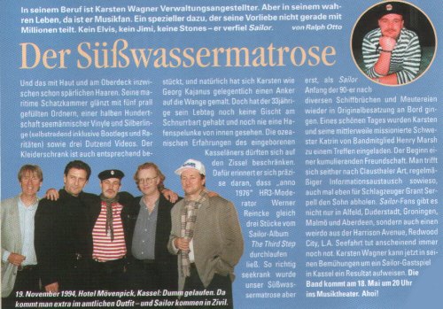 In seinem Beruf ist Karsten Wagner Verwaltungsangestellter. Aber in seinem wahren Leben, da ist er Musikfan. Ein spezieller dazu, der seine Vorliebe nicht gerade mit Millionen teilt. Kein Elvis, kein Jimi, keine Stones - er verfiel SAILOR. - im Original geschrieben von Ralph Otto Ende 1997